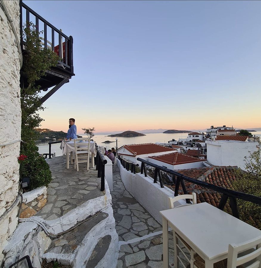 Perched atop a hill with sweeping views of Skiathos town and the sparkling Aegean, The Windmill is a true island gem. Known for its delicious Greek cuisine and warm, welcoming atmosphere, it’s the perfect spot for a leisurely meal or a romantic dinner as the sun sets. With fresh, local ingredients and dishes full of flavour, dining here is as much about the incredible food as it is about the breathtaking views. Tip: You must book!